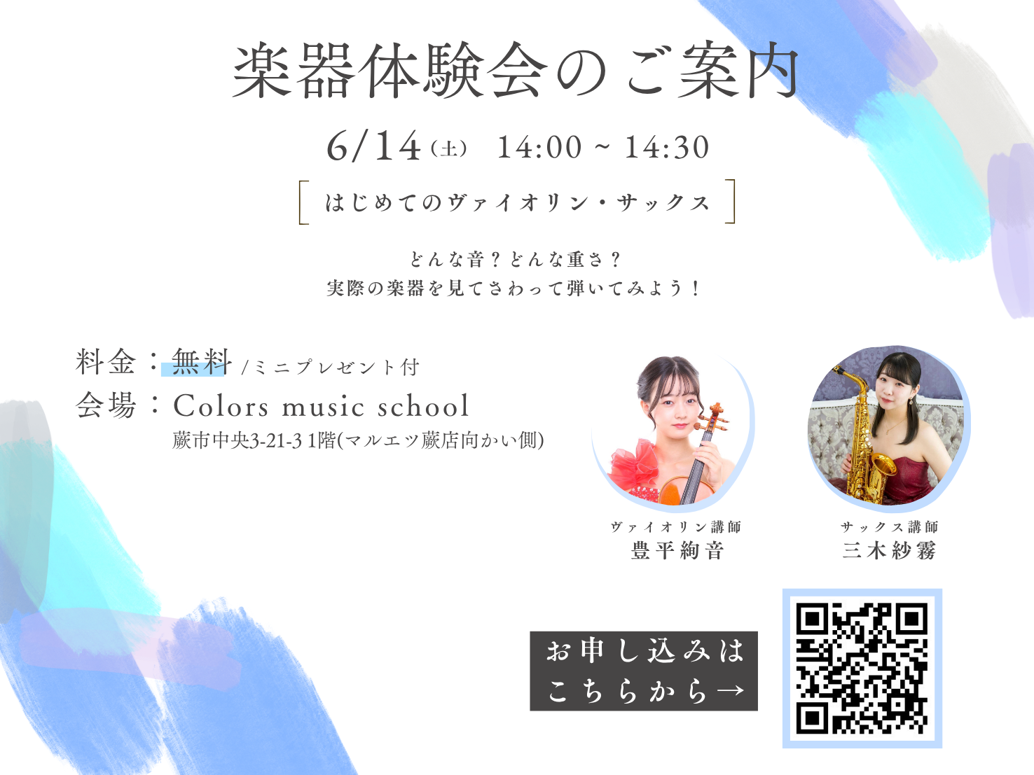 【6/14開催】楽器体験会 – はじめてのヴァイオリン・サックス🎻🎷